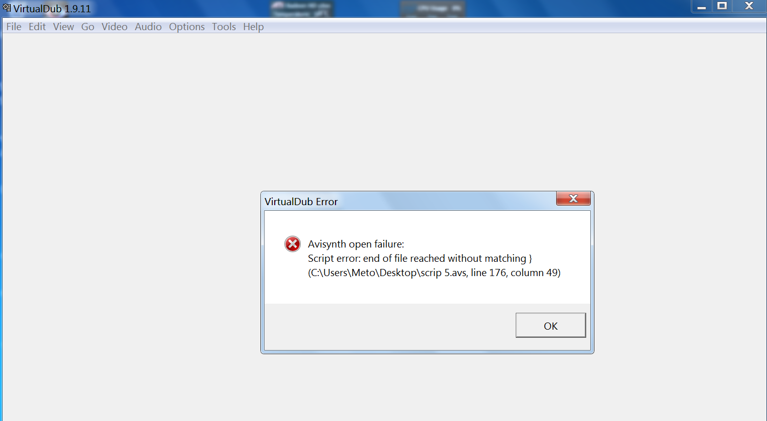 What does that line correspond to? line 176, column 49? Upload your .avs file (the spaces and line order might make the script different than mine) -