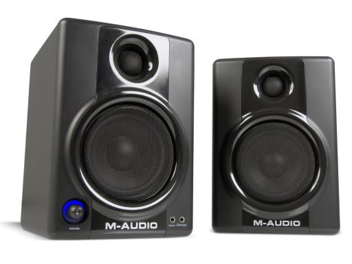 M-Audio AV 30 speakers most of the time; when I am editing I use Sennheiser headphones, since they much less forgiving.