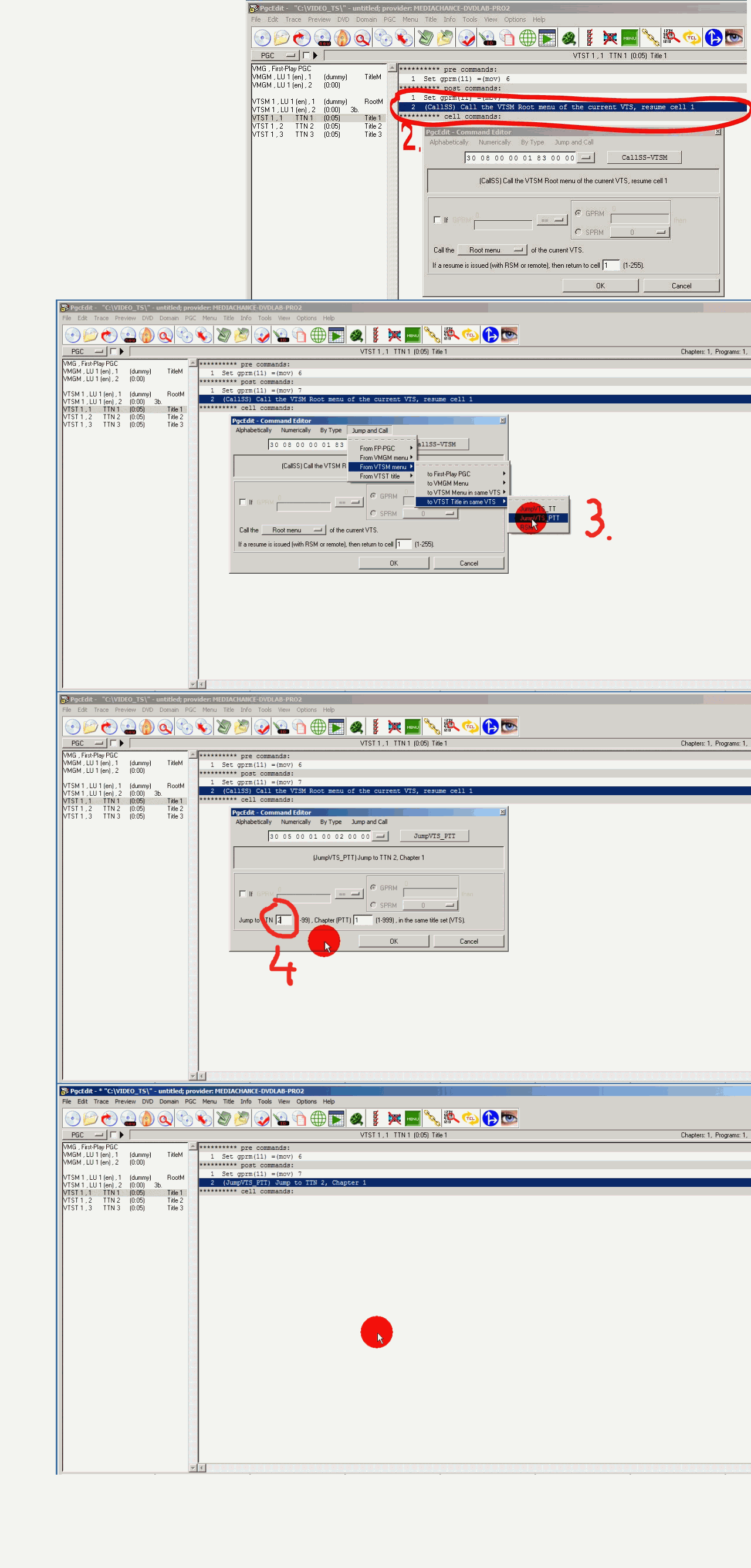 BTW. I'm not sure if it is a good idea to jump from First Play directly to title, there could be compatibility issues with some players, maybe, maybe, I heard about it, so do not take me for that. It also can jump to those VMG menus from first play PGC, I could not tell from posted image. Variable GPRM0 redistributes this, it jumps to VMG menu if GPRM0 is zero perhaps (after you start DVDall GPRM's are zero default) or perhaps higher number than number of titles.