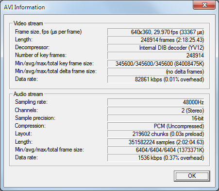 --Going back to DirectShowSource("video.flv", fps=29.97, convertfps=true), what did VirtualDub say about the audio and video? File -> File Information. -