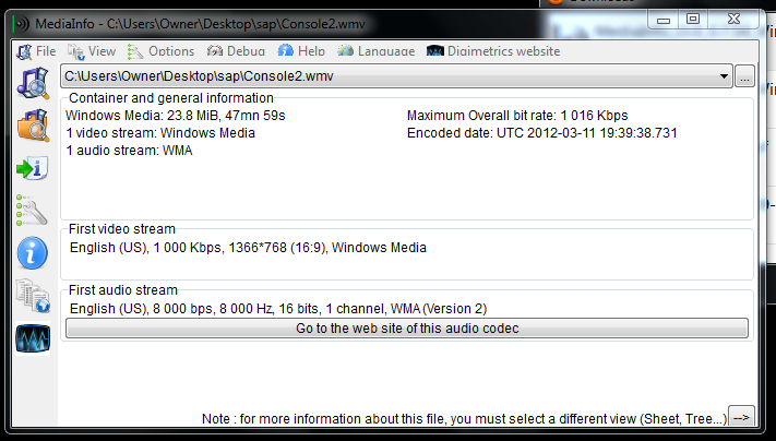 I've attached a screenshot of the wmv details.