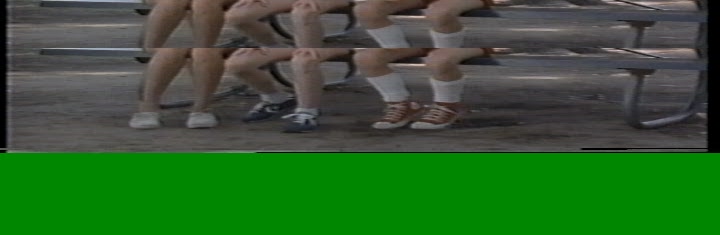 The last thing to fix is frame 0. It shows jumbled parts of other frames and 1/3 of the bottom is green. If you bob that frame or separate fields, the first field displayed is a damaged/green image (top/even field 0), followed by a perfectly good image (bottom/odd field 1). So you'd think that with TFF, and separating frames with Bob or whatever, you should be able to replace the bad "0" with a copy of the good "1".
