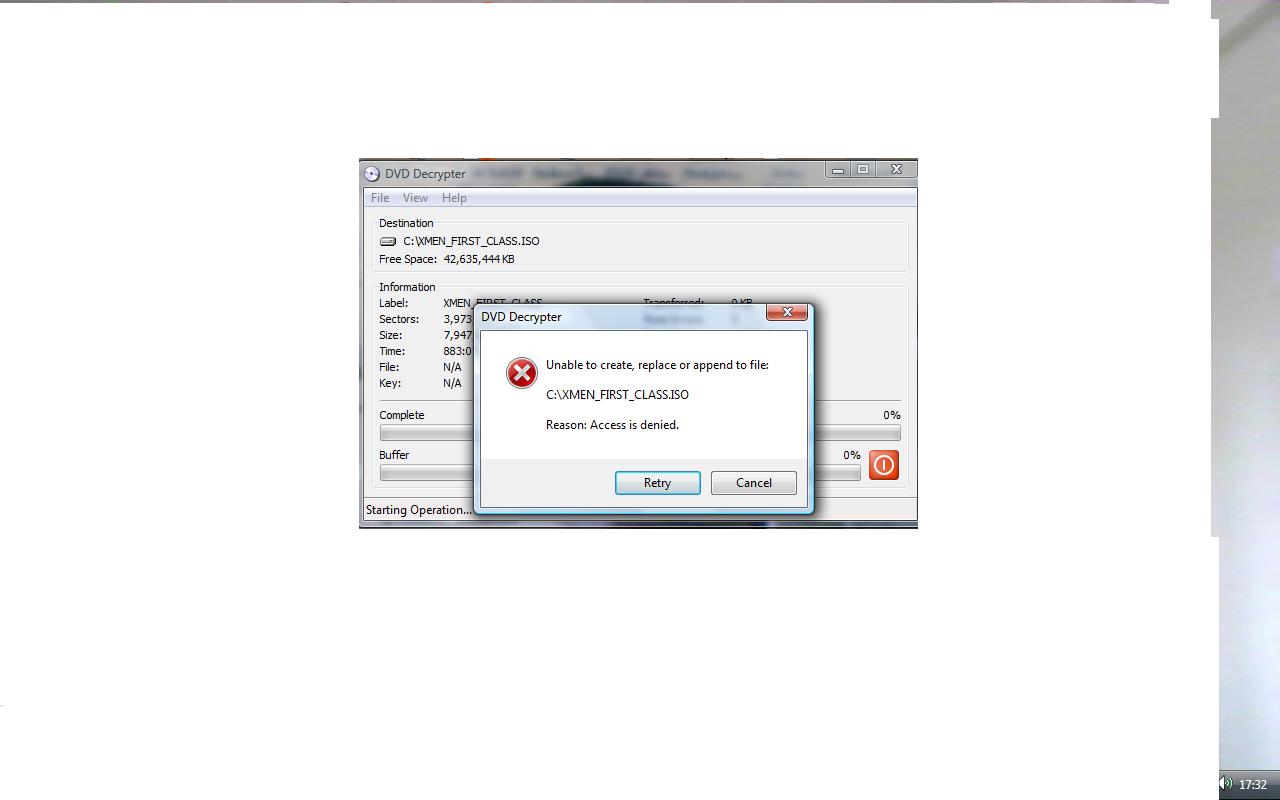 Ok, I am trying to Rip a DVD using DVD Decrypter and when I try to make a .ISO file from it. It gives me a message Attached is the screenshot