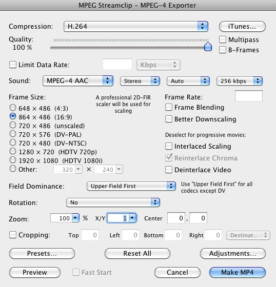 And here's a screenshot of the MPEG Streamclip settings, so you'll know I'm not cropping it on purpose.