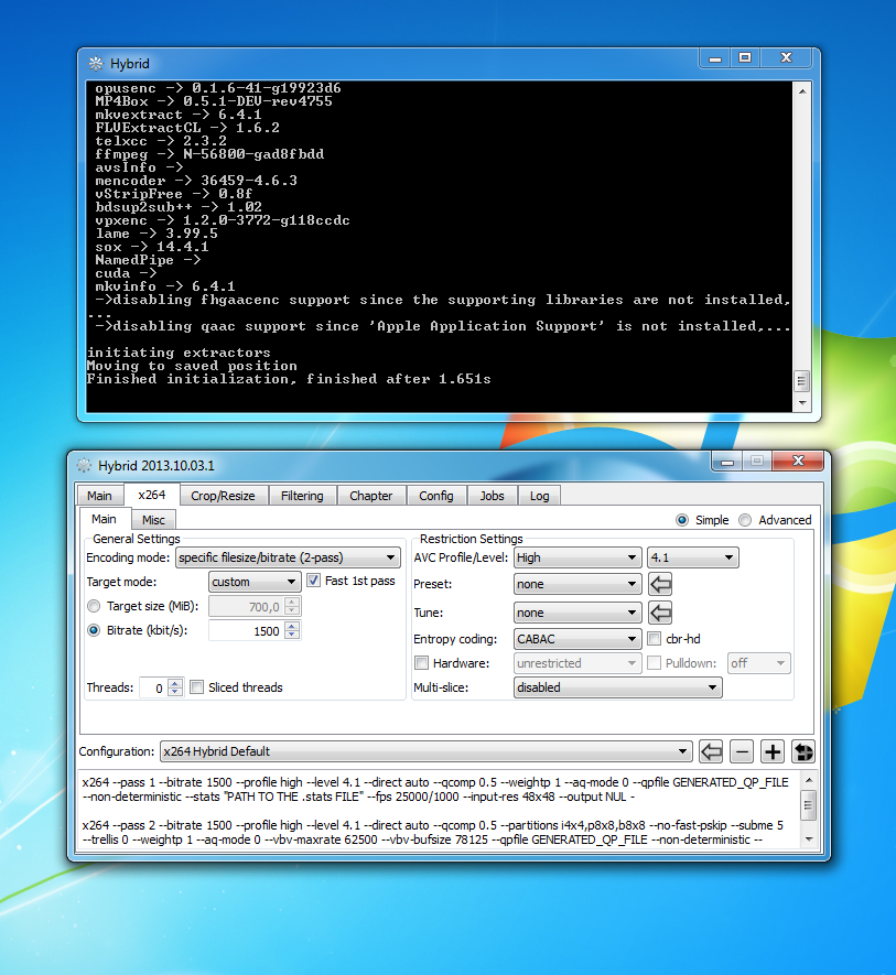 this isn't meant as a jab at Selur, he seems like a decent enough guy, it's just the way all these legally free apps are, handbrake, xmedia recode, media coder, hybrid, they all have the same basic look and feel to them, use the same limited ffmpeg and mencoder and x264 based tools and they all suffer from an obvious case of the author not bothering to actually test his software for more than 3 minutes before pushing it out to a mirror as evidenced by the tons of flaws in workflow logic, general layout and usability bugs.