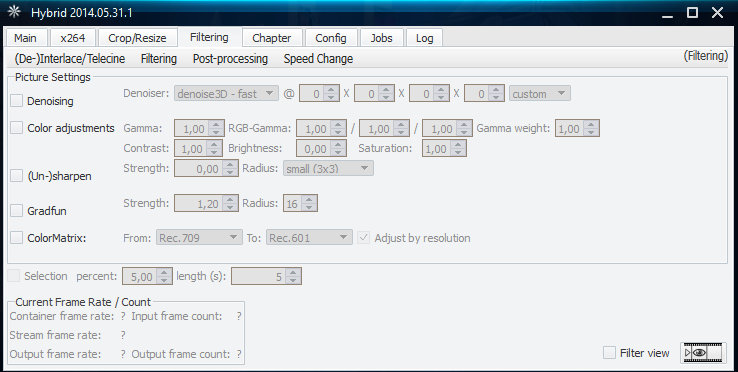 @KaddirB: Adding Avisynth filters isn't really hard (and not much to write unless the filter has lots of options) I just need to know the filter names or even better a link where I can download the filter and find some description regarding it's options&co.