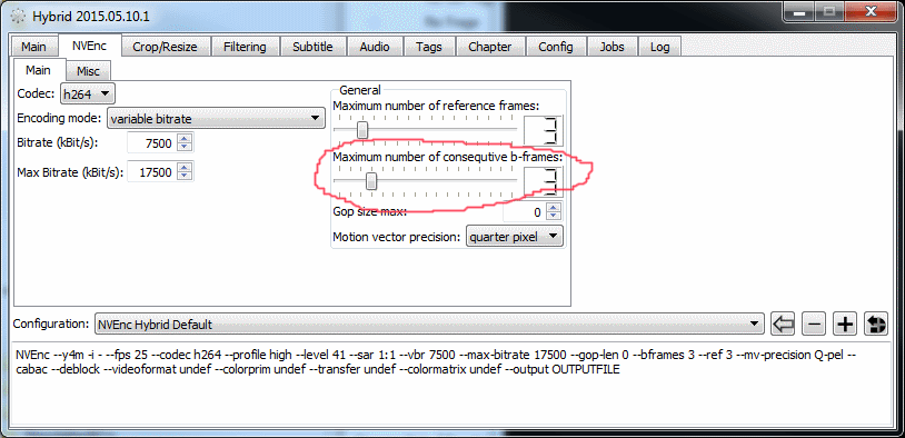 b. What does the command line look like? (got no hevc capable NVIDIA card, so can't test here)
