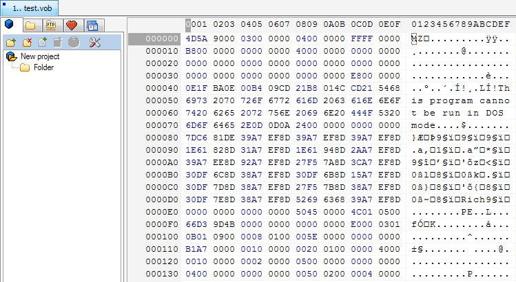 if it is a true .vob file, hex editor must display following hex codes at line zero, i mean at zero address,