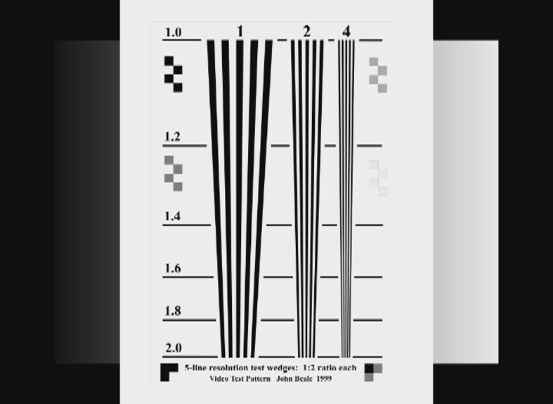 This chart has large areas of 235 white which are difficult to reproduce in FM modulated VHS players. A better chart would use a medium gray background with full white to black wedges.Recommends: Kiva.org - Loans that change lives.
