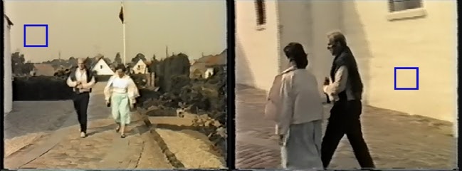 Asesinato, I don't know if you have recaptured the scene shown below. It has shots that will make better noise samples. NeatVideo works best with noise from large clear areas like the open sky and the smooth areas of the side of the church shown in the sequence below. I took these images from your earlier "1.ts" post. It wasn't a good capture and has NO DETAIL. If you have recaptured this scene using the same process you used for the 3 captures posted above, is it possible to post a few frames from the original unfiltered AVI? The blue square in the images shows the kind of open areas that NeatVideo uses best. The shots from the old "ts" captures can't be used.
