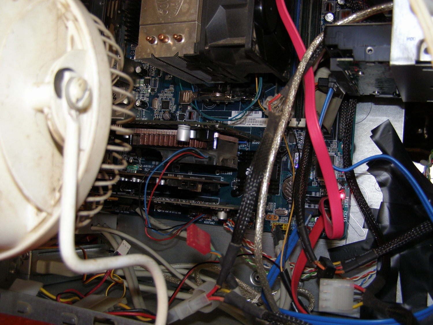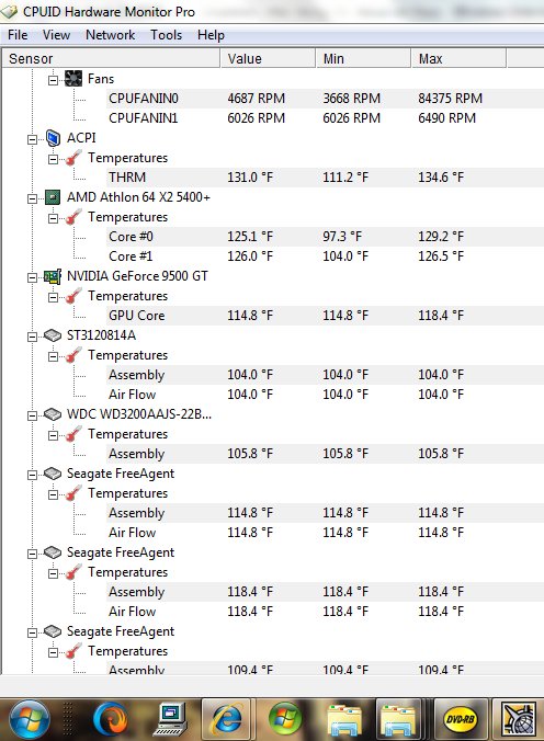 Okay with the fan on my work table ... blowing on the video card ... here are the specs now ... if you look closely ... you can see the small fan glued to my video card ... I use silicone rubber cement glue ... works great. That table fan works great too ... blows air directly at what it's aimed at. Check the video card temps ... the temp dropped quite a lot ... with the air blowing on it. Oh and it's 90 degrees in here ... temps from other post ... hours ago ... it was 3 AM in the morning.