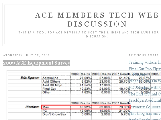 @JimmyS, what I find interesting in that citation is that, contrary to "popular belief", AVID systems were still at over 75% of the ACE market in 2009/2010 (regardless of platform).