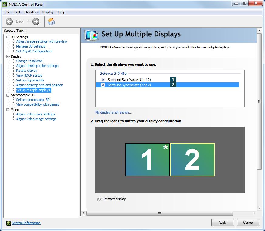 Multiple Displays : Duplicate These Displays (appears in the option window)