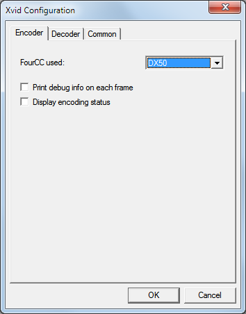 Regarding fourcc, i don't know where to find it! I select Xvid Encoder in video settings in addition to some more general video settings and that's about it, there is no such option.