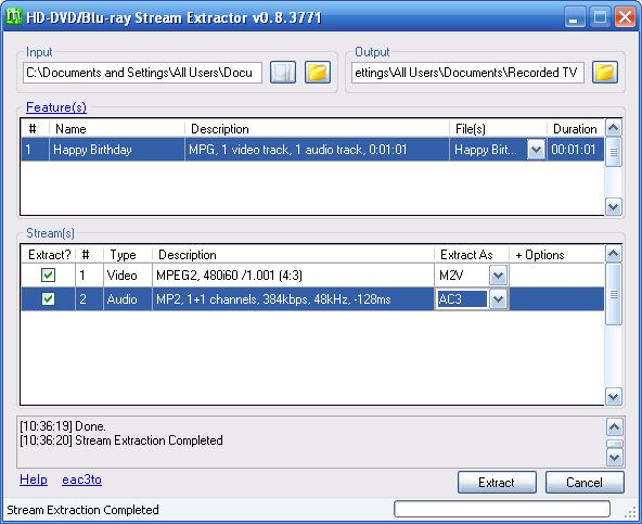 I got eac3to, opened up the stream extractor, and picked M2V for video stream, and AC3 for audio stream. Did I do this right? Now I can use AVStoDVD to combine those files?
