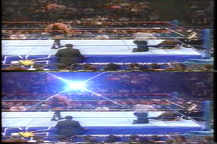 There are lots of analogue timebase errors, macroblocks, aliasing on the ropes round the ring (just a limitation of the 480 lines resolution).