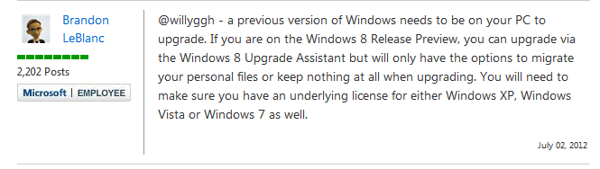 I have XP licenses. And there are easy ways around the previous license requirement.