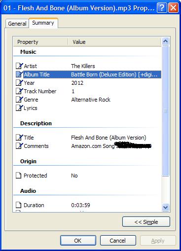 You have to click the advanced tab under summary. Chances are something is screwy in this screen and is messing up your tagging info in the software programs. You have to dig into the code so to speak to get to the root of the problem.