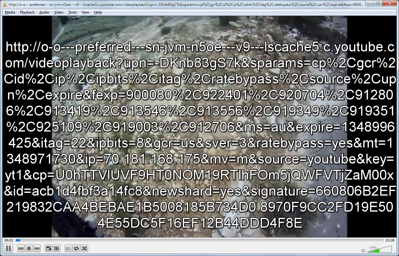 VLC playing the video (and displaying the URL):