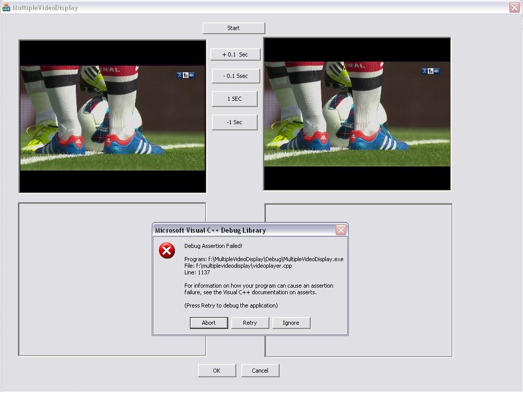 I have four CStatic based window in which i am display the video user can seek 0.1 second wise, seconds, minutes and hour bases. I can able to see the video on the first two CStatic window, rest of the two window get a black screen with a message debug assert failed message.
