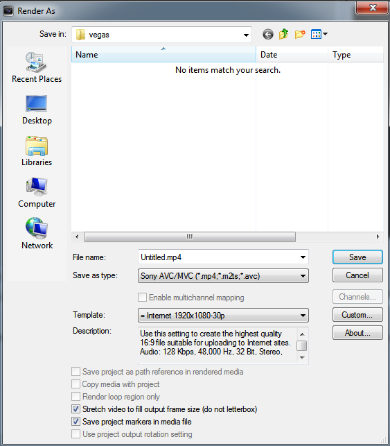 Sony Vegas render settings for youtube