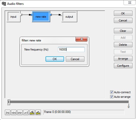 If you just want to see what I did, load video into Virtualdub (if you have it and it will load okay for you) and select audio --> fullprocessing. Then select Audio --> advanced filtering. Then audio --> filters --> add and add filters input, new rate, and output. Hook the inputs and outputs together if they aren't and double click the new rate to change it. Click test and it will play the filter but it's not quite funtional going from multi-channel to stereo in Virtualdub.