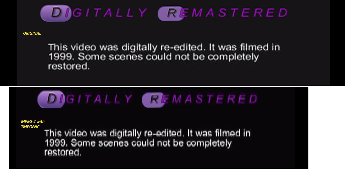 Notice the difference in the text from the original, vs the mpeg2. How can I make that match the original? I'm sure cleaning that up will have positive affects all over the video.