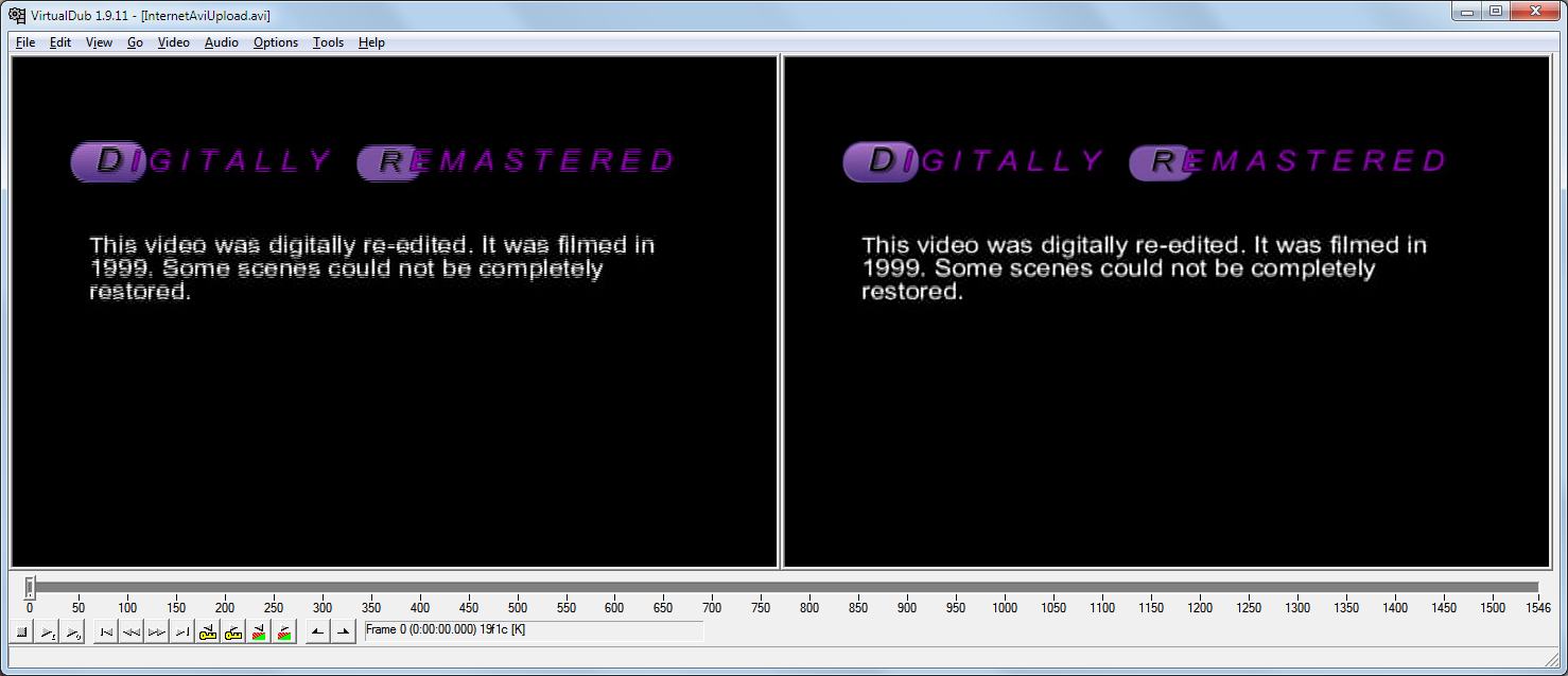 I originally captured the raw footage back in the year 2000 with Studio DC10+ with some custom resolution of 608x464 (i learned later that this was an error). I then went and down-mixed it the project into a single file that was the same resolution.