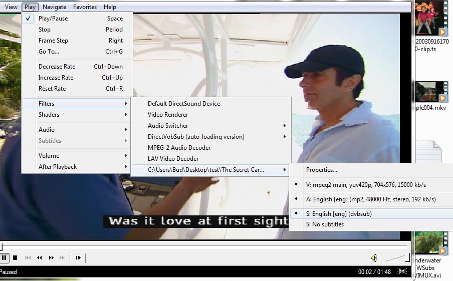 For the filter, I use Media Player Classic's built-in filter. The filter cannot be used to enable or disable subtitles.
