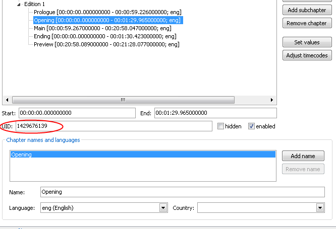 I've looked in mkvinfo but it doesn't give me that same uid when i open up the original OP, so i don't know how to find the one for the new one i encoded.