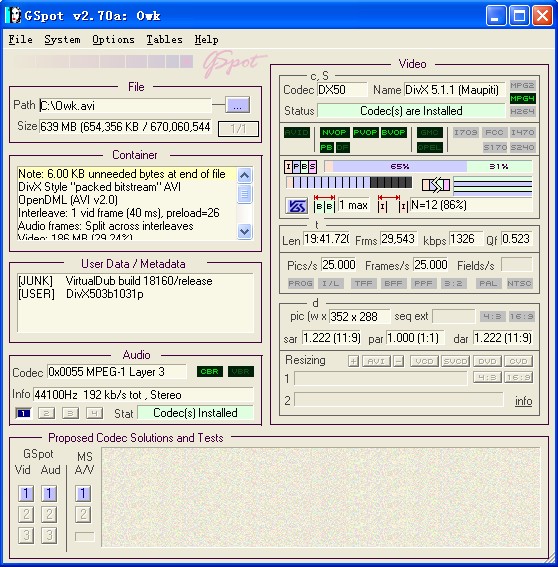 I downloaded a .mule.td file using emule. It displays the following info using GSpot and MediaInfo. I would like to convert the file to a avi file. The file is currently in packed stream and does not play properly using any video file players. My understanding is have to unpack it first. I tried MPEG4 Modifier already, but it only accepts avi files and this file is in DX codec. Anyone has any ideas?