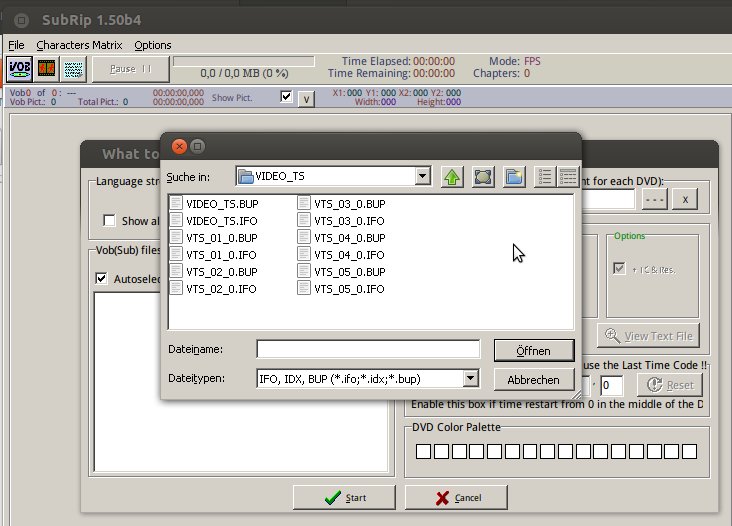 I start subrip and click on "VOB". Then i click on "Open IFO" and browse to the DVD. There are several IFO's to pick, I choose (?): "VTS_05_0.IFO"