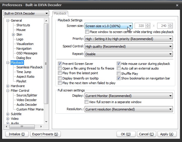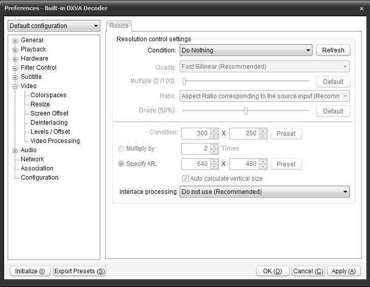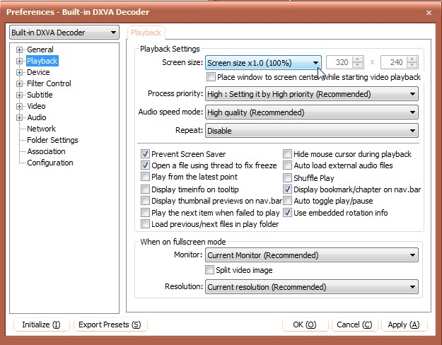 If I have a 640x480 video on my computer, I'd like PotPlayer to open and play the video at 640x480. I can then choose to resize it or double click the mouse to go to full screen. I figured out how to lock the aspect ratio.