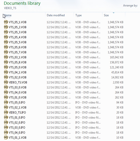 Now select all the group of VOB files that are large. In mine for transformers it is the VTS_05_x.vob files: