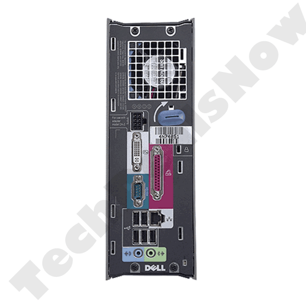 I have the small dell optiplex 745. It's a duo core with 2 intel (R) Q965/Q963 express chipset family. I'm running to the dvi I think, it's the white slot, oppose to the blue(vga) slot. I have a dvi adapter on my tv cable, and it's running to the white dvi slot, you can see this in the pic above.