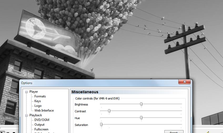 I got some x264 files that play just fine in WMP but I want to be able to watch them in black and white on the fly. I'm an encoding noob so my first script looks like this: