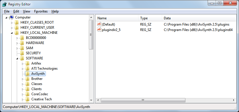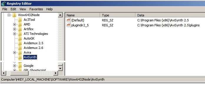 I just checked and sambat is right. 32 bit AviSynth under 64 Bit Win7 uses the settings in the Wow6432Node section. Here's the .REG file (in .ZIP). You should extract the .REG and double click on it. -