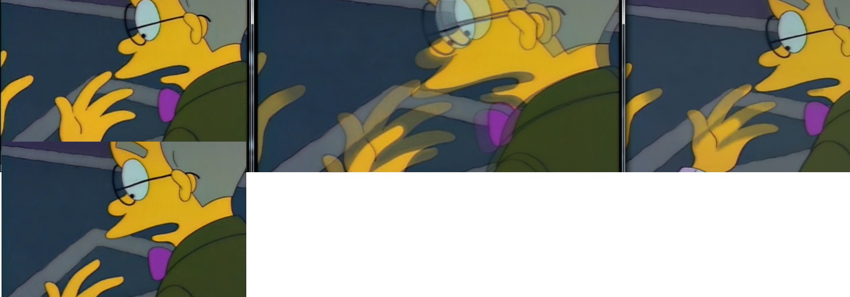 At 7.0 to 7.7 seconds, while zooming into the letter P of "SIMPSONS" the telecine pattern of the outer title and the hole in the P don't match. Any field matcher (like TFM()) will be confused by this.