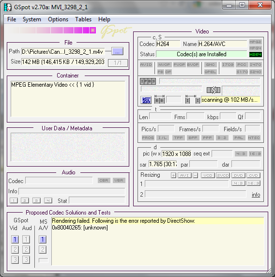 And this is Gspot of the video re-encoded using the Adobe Encoder which makes the video compliant and doesnt need transcoding but as its been re-encoded, id like to avoid that: