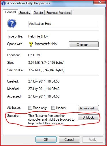 I even checked the properties of the .hlp file and never even noticed that it said that at the bottom of the first tab!!