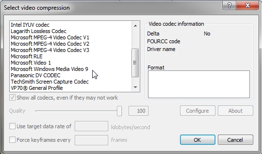 It is possible to output to WMV9 video by using a VCM video codec: