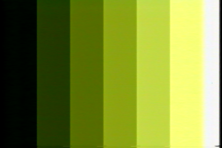 Counting from the bottom, lines 0 and 1 start with some pic info then trail off into just black. Then lines 2 and 3 have fine luma but no chroma. Then line 4 starts fine and trails off into no chroma. Then line 5 is fine. Then line 6 starts fine and trails off into no chroma (but only on alternate frames). Then line 7 is fine, along with the rest all the way up to the top of the image.