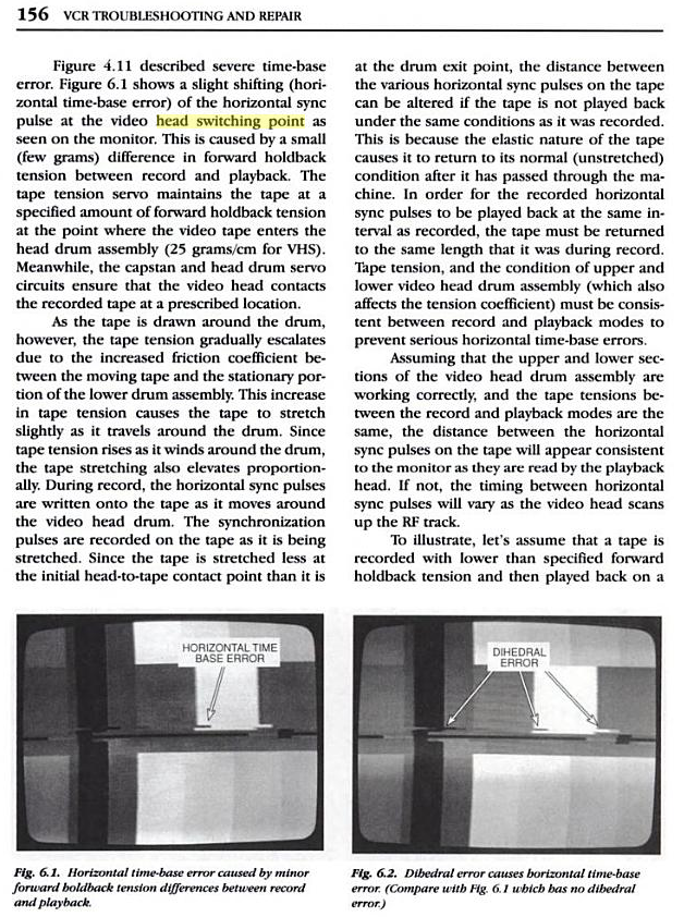 This page, discussing a particular playback issue, says "Figure 6.1 shows a slight shifting (horizontal time-base error) of the horizontal sync pulse at the video head switching point as seen on the monitor." But I don't understand when it says to Compare Fig 6.2 to Fig 6.1; they look the same to me.