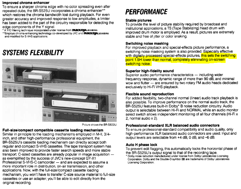The reason they referred to this as masking, is because by default these decks not only pushed the switching noise down but also masked the remaining noise from the image. There is an internal switch on one of the modular video boards which must be flipped to disable this masking.