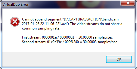 The problem is that VDub doesn't like the frame difference. It just gives me an error.