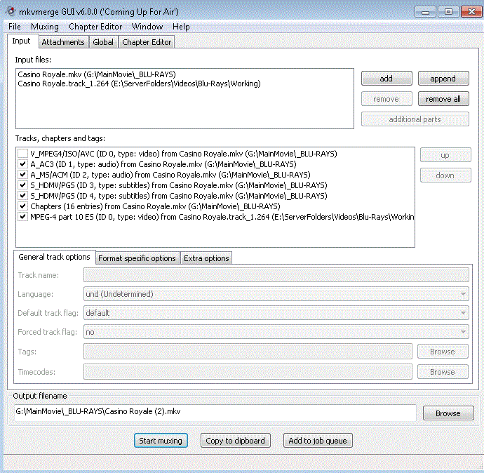 - Open the original ripped Blu-ray with mkvmerge