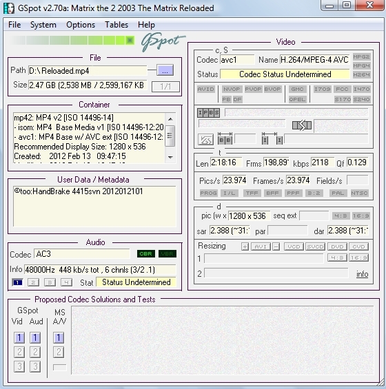 Also, use Handbrake to find out the codec. That's the program that wrote the file.Last edited by budwzr; 9th Feb 2013 at 16:43.