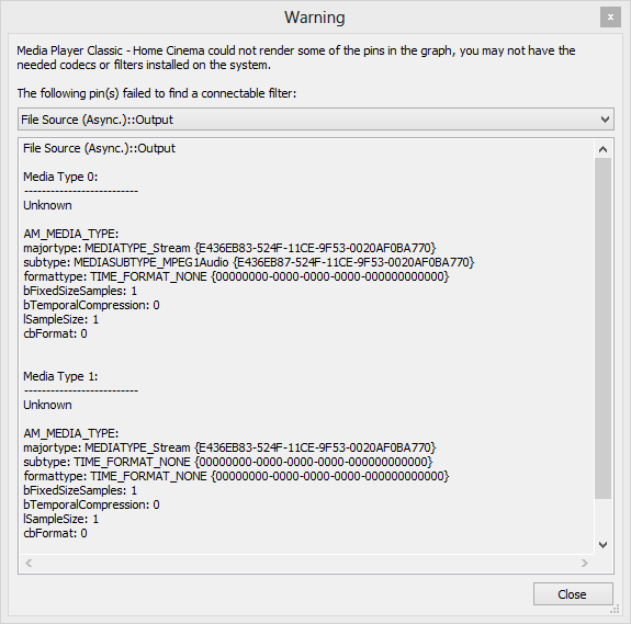 clean install of windows and installed CCCP RC-2012-12-29, when trying to play certain mp3s i get the below error :