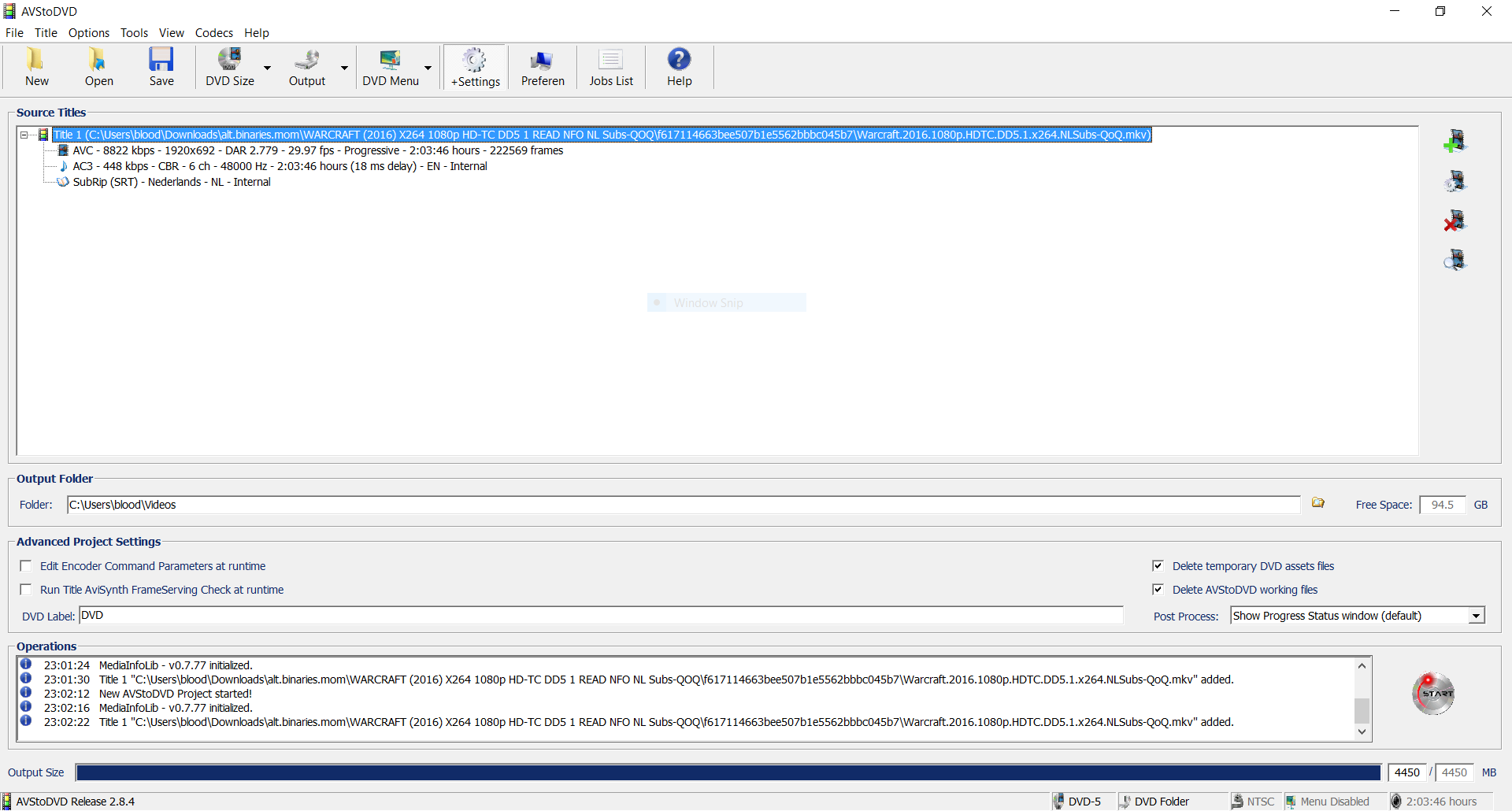 DVD Size: 4450/4450 MB (100%)
