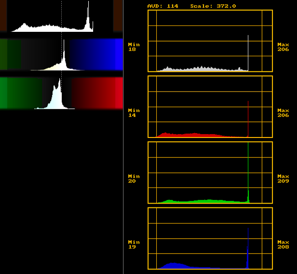 I don't even know why I just put 2 hours into looking up every masktools script I've collected, and studying the AfterEffects demos on masking and blending. But I suppose that's the only way to get thru this stuff. One big reservation I have is that the capture itself is to too bright to begin with; if a darker capture could salvage some of those destroyed bright values....(because apparently red and blue are being clipped "earlier" than green, which leaves bright greens but no other brights). That might prevent some of the green smear). Then I started playing with switching/blending color channels in YUV and RGB both -- not that I know that much about it. But the clipped colors stopped me every time.